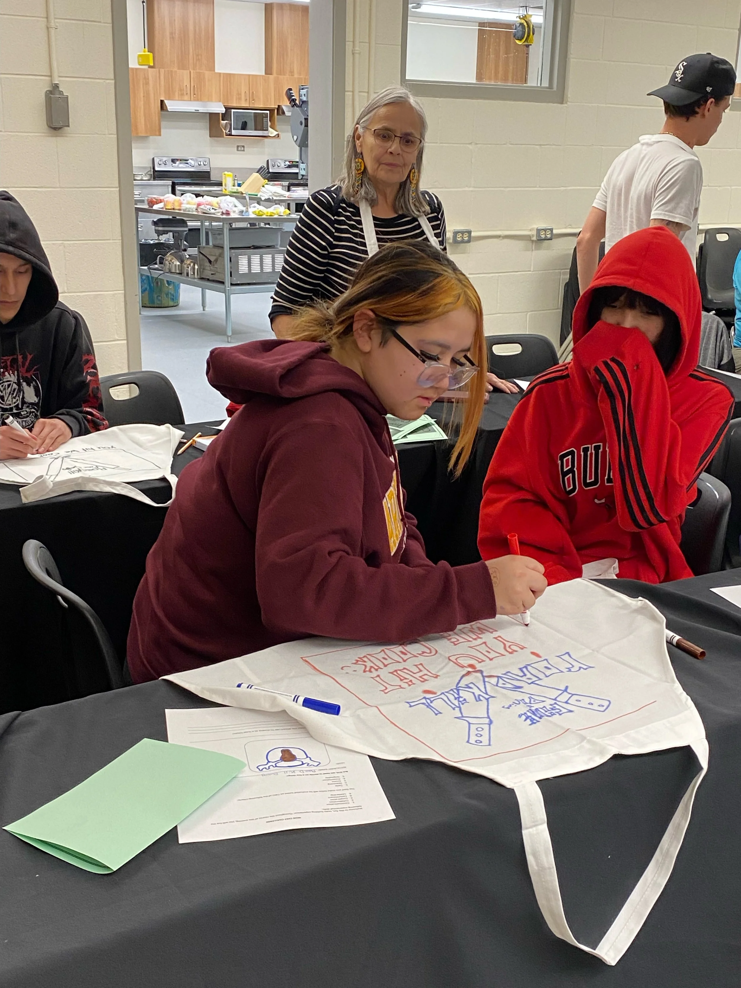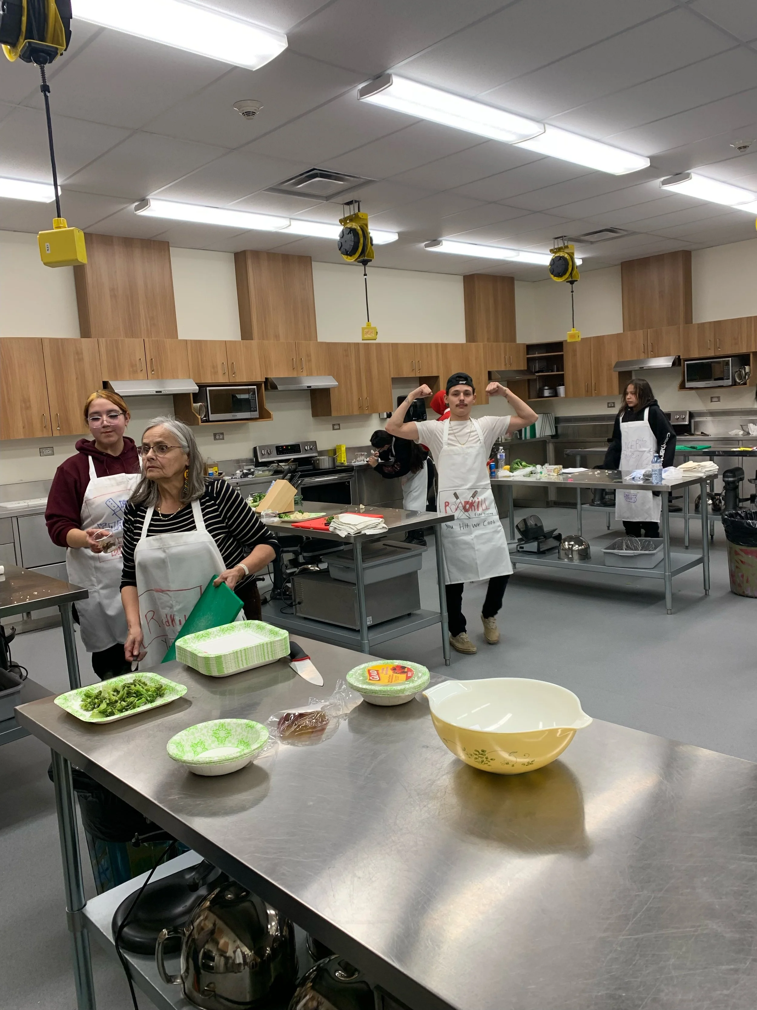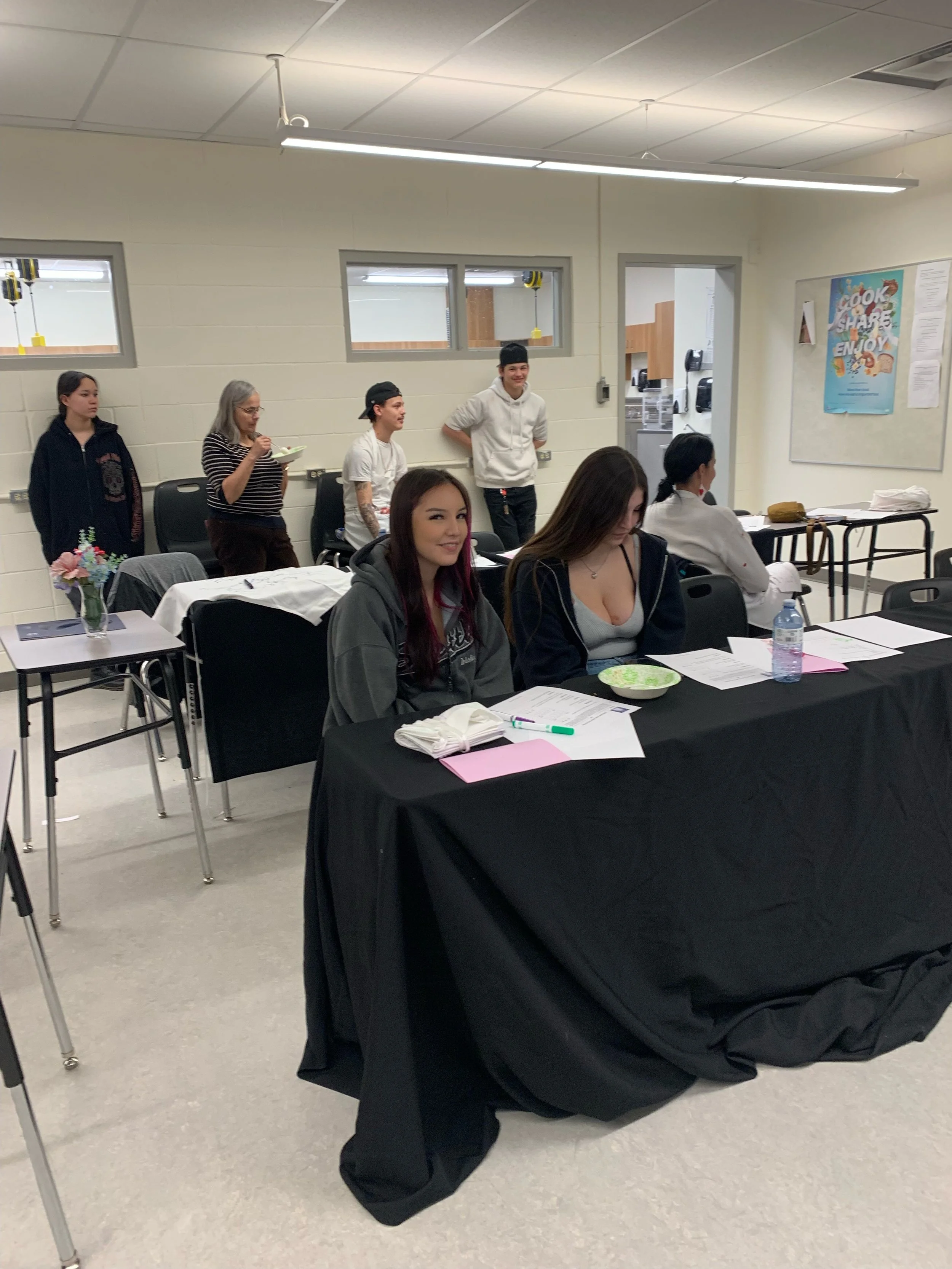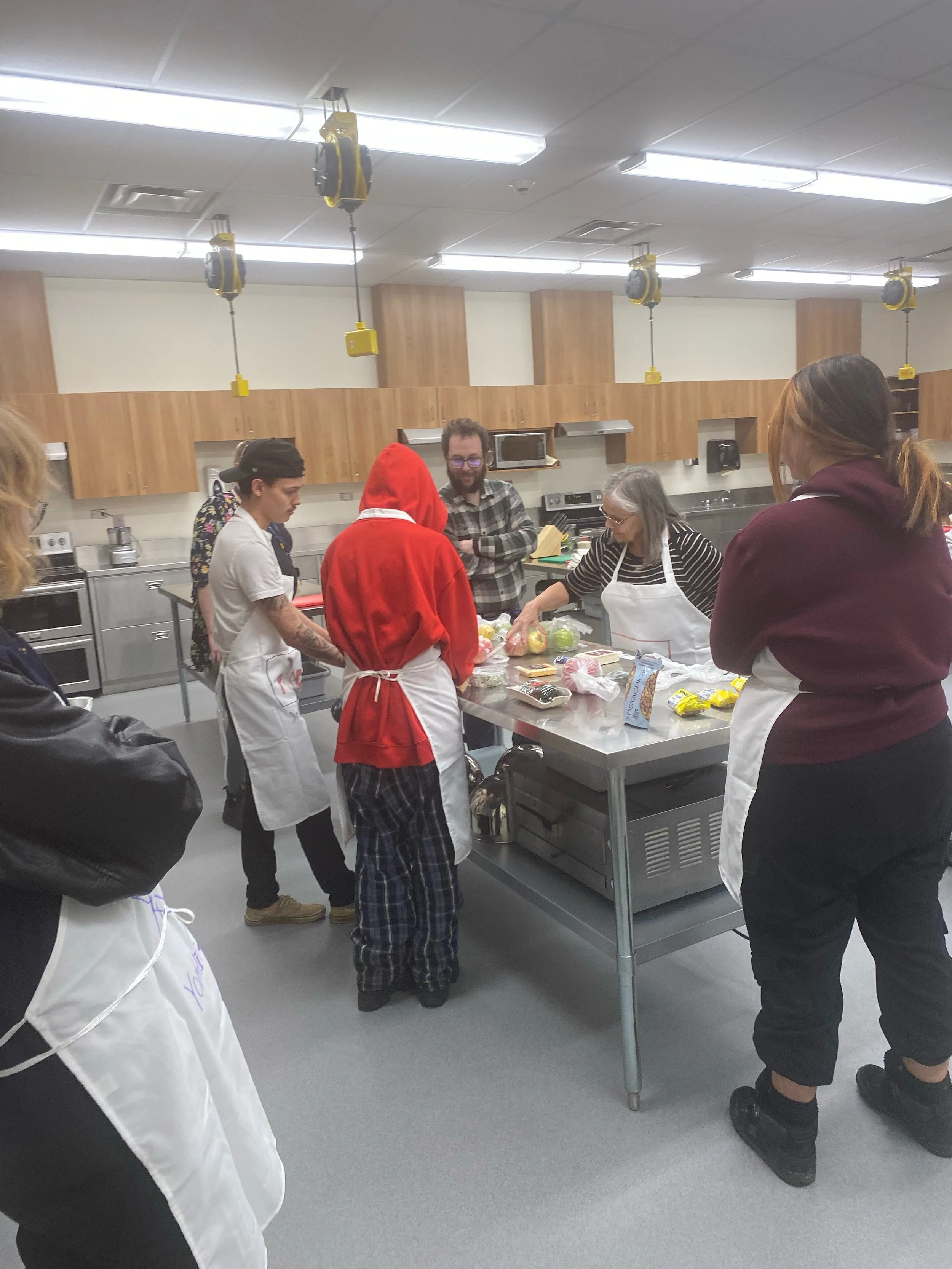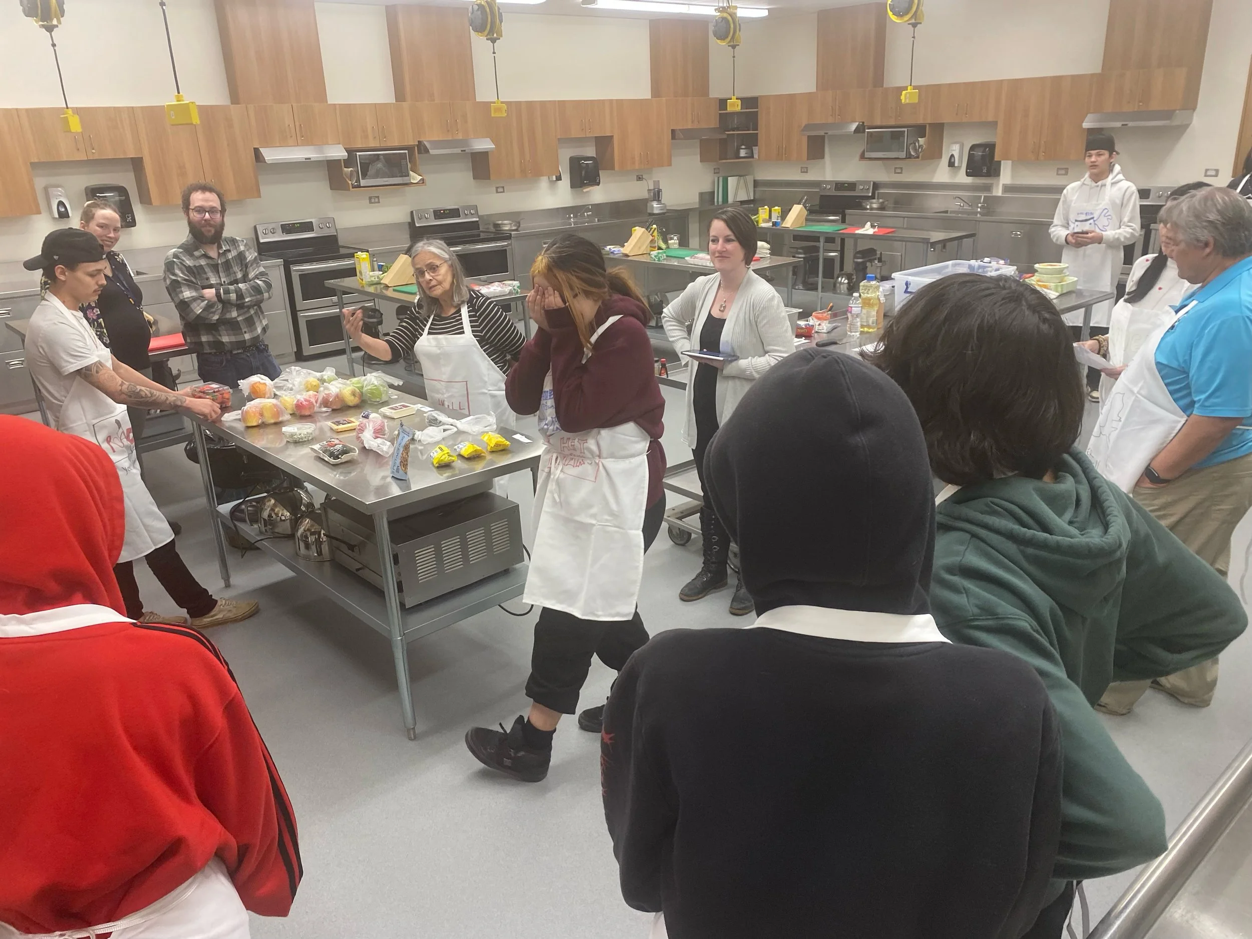 This month it was the Iron Chef Challenge, in partnership with Keyano College. Students, boarding home parents, and ATC staff participated in this exciting cooking challenge. They made leek soup, parmesan risotto, chicken pesto, and caramelized apples. The teams learned essential skills for working together and enjoyed a wonderful dinner together.