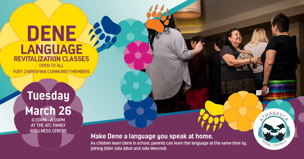 As children learn Dene in school, parents can learn the language at the same time by joining Elder Julia Gibot and Julie Mercredi. First, you will be learning greetings. Second, you will learn numbers and months; the third will be animals, plants, and trees. By the end of the 10th session, the attendees can hold small conversations in Dene at home as a family.