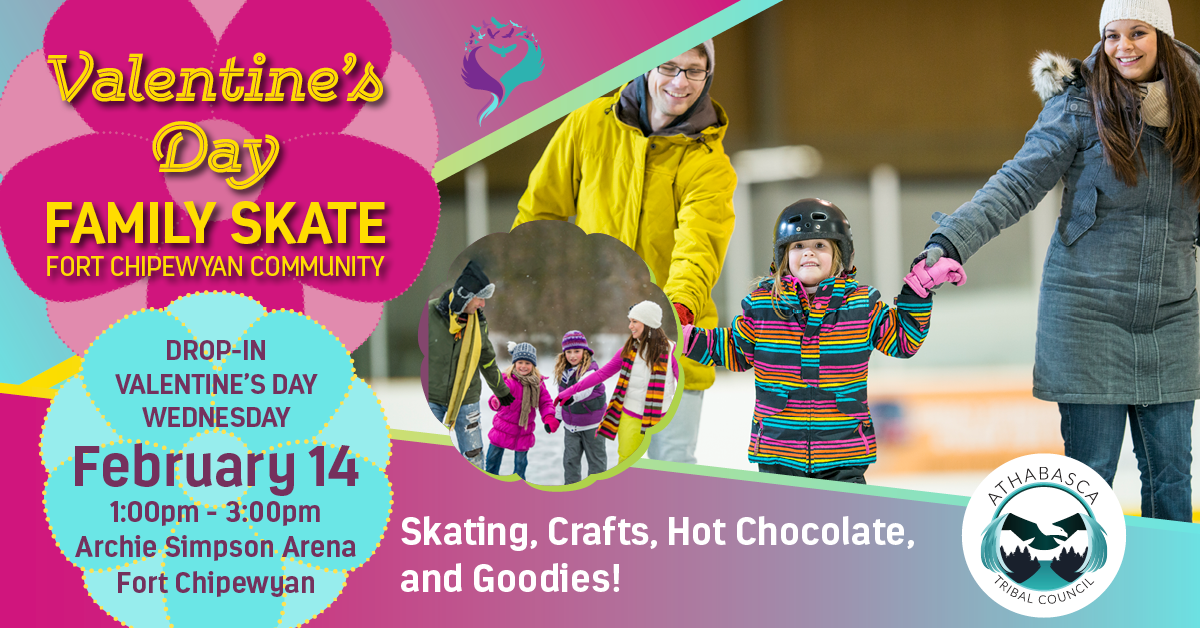 Share the love of family on Valentine’s Day. Come skate or make a craft with Helping Hands. Everyone can get hot chocolate and Valentine’s Day goodies.