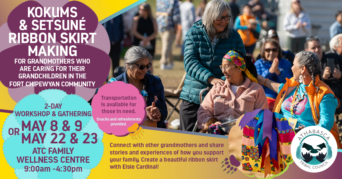 Connect with other grandmothers and share stories and experiences of how you support your family. Create a beautiful ribbon skirt with Elsie Cardinal!