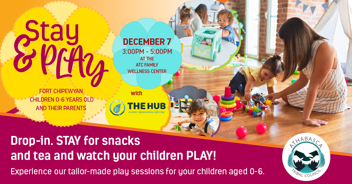 Experience our tailor-made play sessions for your children aged 0-6. Talk with The Hub and gain valuable insights and skills related to early childhood development and play. Don’t miss this opportunity to nurture your family’s growth and wellbeing. More information: www.atcfn.ca/events