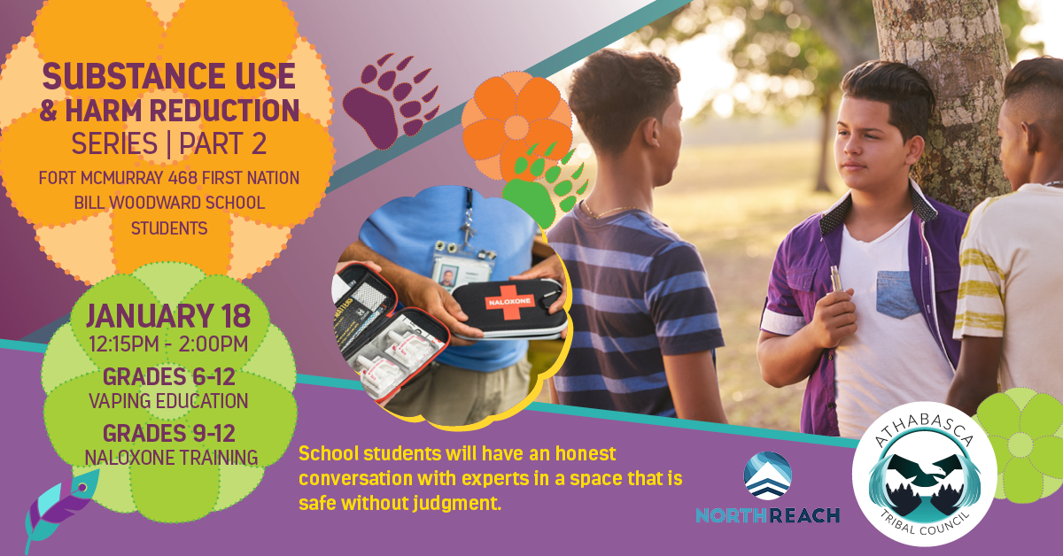 Northreach is a local organization focused on Harm Reduction. They will give an educational presentation that includes Indigenous perspectives on substance use and harm reduction. Life saving Naloxone training will be given to the older students.