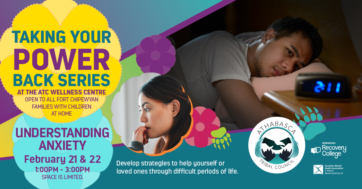 Anxiety is a feeling of fear, dread, and uneasiness. Understanding anxiety involves recognizing a range of emotions and physical sensations, and fostering empathy for those navigating healing.Recognize the connections of emotional, mental, spiritual, and cultural wellbeing. This session, presented by Recovery College Canadian Mental Health Association of Wood Buffalo, will explore anxiety from an Indigenous perspective.