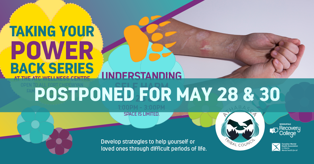 Recognize the connections of emotional, mental, spiritual, and cultural wellbeing. This session, presented by Recovery College Canadian Mental Health Association of Wood Buffalo, will explore self harm from an Indigenous perspective. Develop strategies to