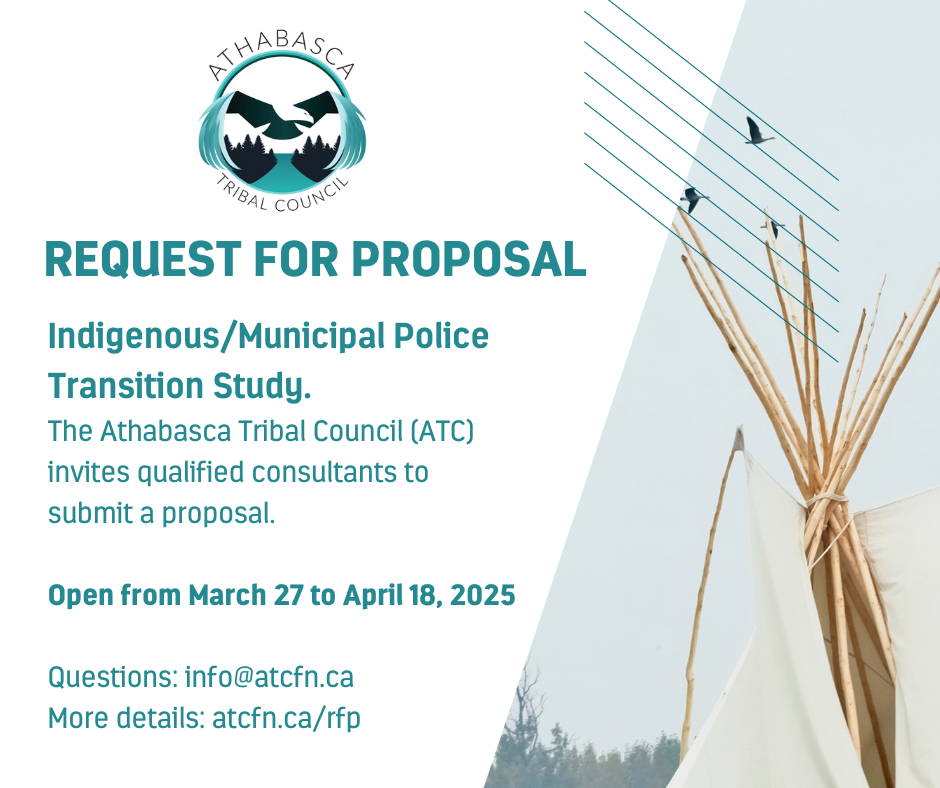 The Athabasca Tribal Council (ATC) invites qualified consultants to submit proposals for a comprehensive feasibility study to explore the establishment of a tribal police service within the Regional Municipality of Wood Buffalo. This initiative will assess the feasibility of creating a community-led policing model that addresses the safety and security needs of the Athabasca Chipewyan First Nation, Fort McMurray 468 First Nation, and Chipewyan Prairie First Nation, in alignment with Treaty 8 rights and the broader goals of the ATC.